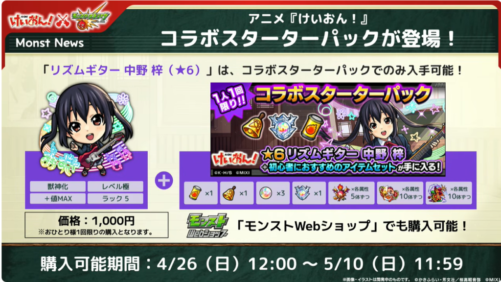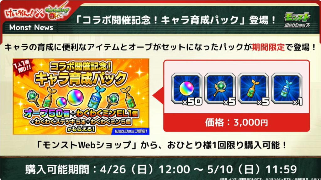後はコラボ開催記念でのキャラ育成パックも販売とのこと